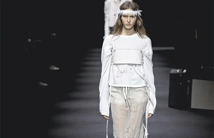 En un antiguo convento, el de los Cordeliers, en pleno barrio latino de la ciudad del Sena y tapizado de negro, se presentó la colección que Stefano Gallici, responsable de la dirección creativa de Ann Demeulemeester, ha imaginado para las estaciones más cálidas del próximo año.