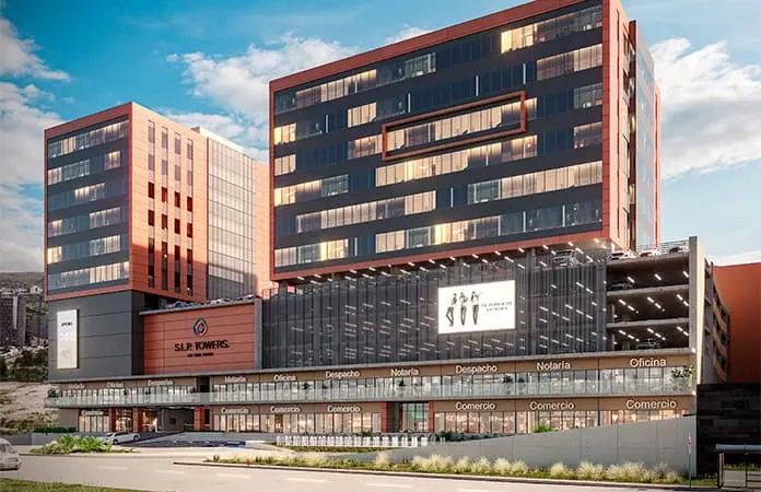 SLP Towers es un desarrollo de usos mixtos que integra oficinas, consultorios y locales comerciales, ubicado en una zona estratégica de San Luis Potosí, frente al Parque Tangamanga y junto al centro comercial The Park, consolidándose como un punto relevante para la actividad empresarial y profesional de la ciudad.