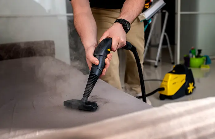 Si cuentas con una vaporera doméstica, aplícala lentamente en costuras del colchón, esquinas y muebles cercanos. El vapor debe ser constante y directo para ser efectivo.