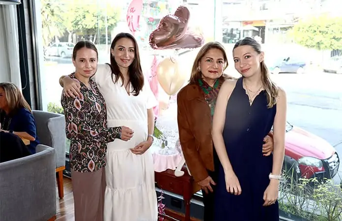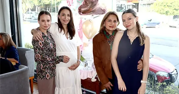 Ahí, compartieron su felicidad, su mamá Mónica Guillén y sus hermanas Paulina y Gabriela López, tías, primas y amistades cercanas, quienes le desearon bienestar en su maternidad.