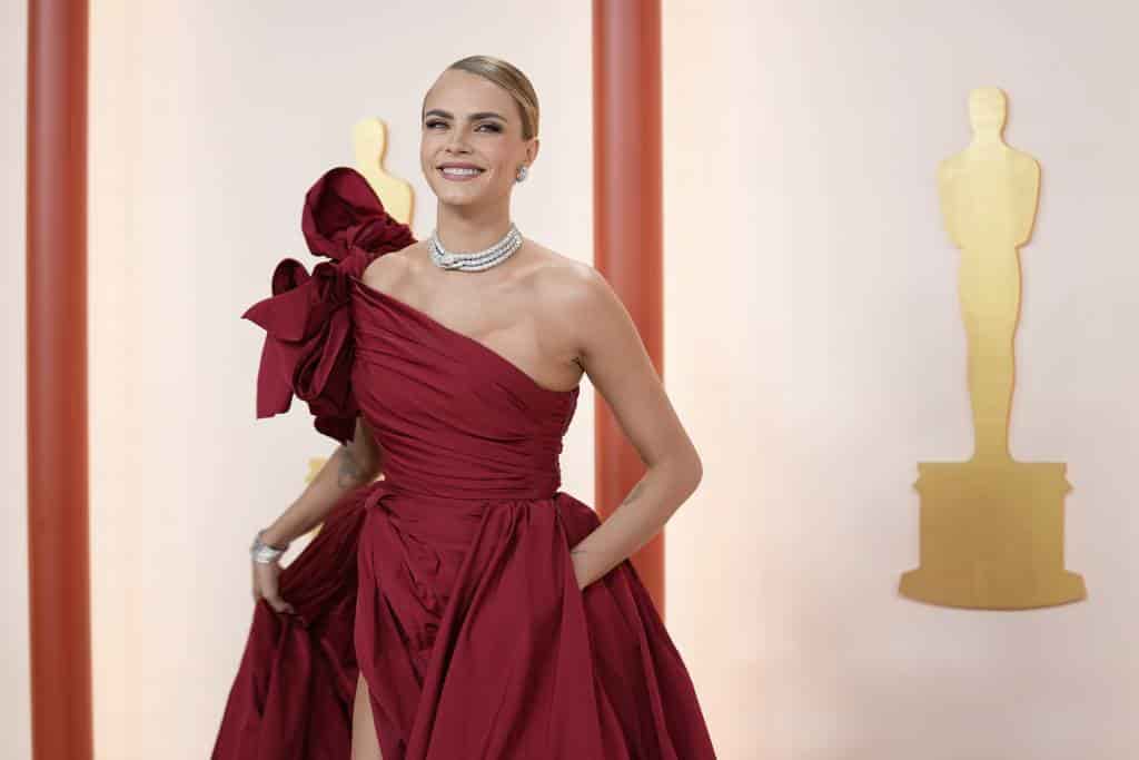 Si Cara Delevingne ha sido toda una estrella por la elección de su vestuario, no lo es menos por el acierto en la gargantilla de Bulgari, un collar Serpenti en oro blanco con dos esmeraldas talla brillante en forma de pera y diamantes engastados en pavé, que combinó con pendientes y anillo de esmeraldas.