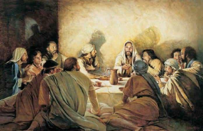 Durante la cena, Jesús cogió pan, pronunció la bendición, lo partió y lo dio a sus