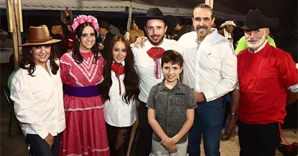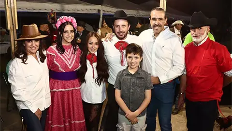 Con su esposa Martha García Compeán y sus hijos Maritza Villalba García con su esposo Claudio Valle Portilla, Ricardo y Mauricio Villalba García recibió a los invitados, en una atmósfera de gran colorido y alegría.