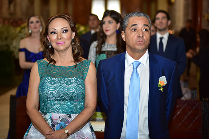 Intercambiaron promesas de amor y fidelidad y, ante Dios, se dieron el “Sí quiero”; el presbítero les impartió el sacramento y bendijo los símbolos que les entregaron los padrinos.