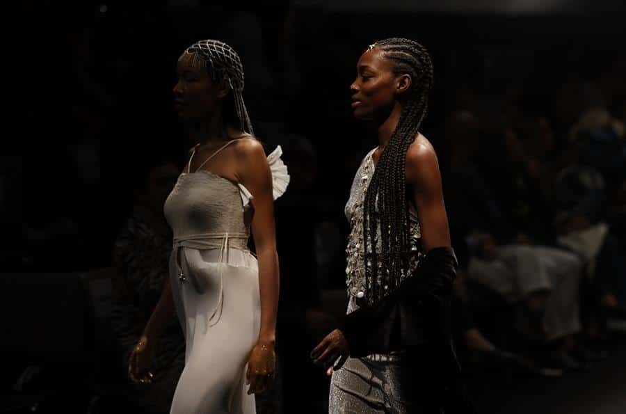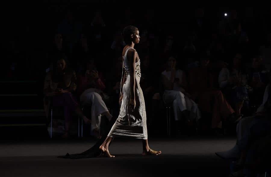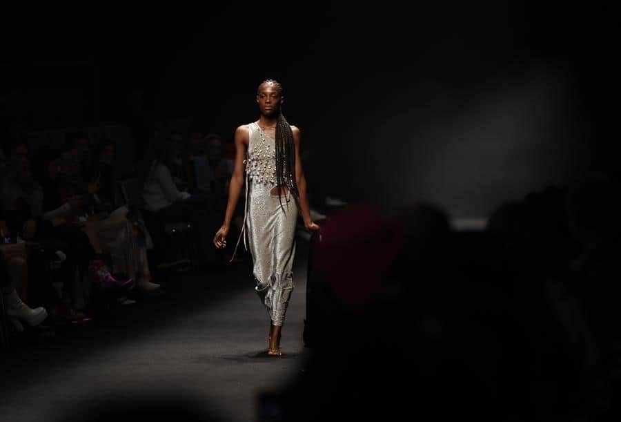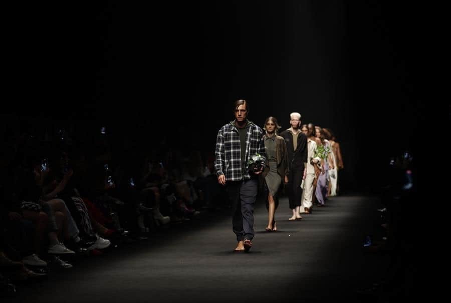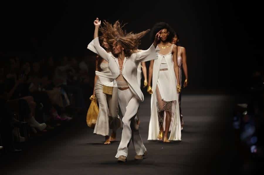 Más allá de las sandalias de plataforma y de los cortes asimétricos de Sientochenta, o de los juegos de transparencias y plisados en las sofisticadas piezas de Religare, la colección "Esto es basura" de la firma Paréntesis apostó por incrustar la frase "This was trash" (esto era basura) en la parte trasera de sus chaquetas y hasta en alguna de sus bolsas de tela.