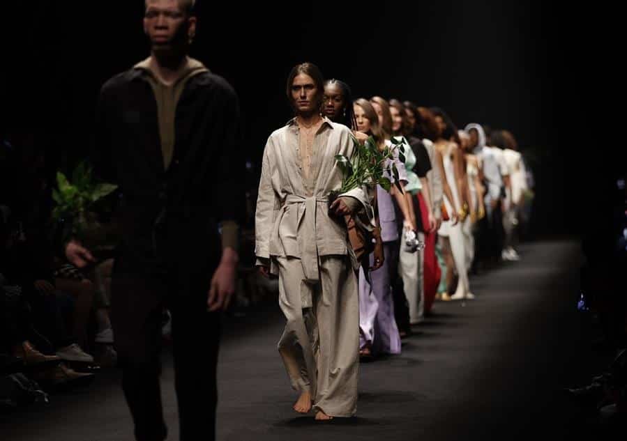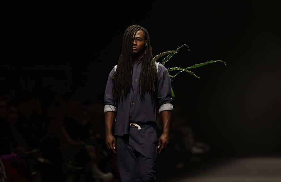 Luciendo enterizos negros, conjuntos de color tierra y otras prendas "atemporales" que hacen parte de la colección "Criaturas de la tierra", los modelos de la firma Della Terra sorprendieron al público portando en sus manos macetas de hojas verdes que evocaban el propio sentido de la marca: "De la tierra".