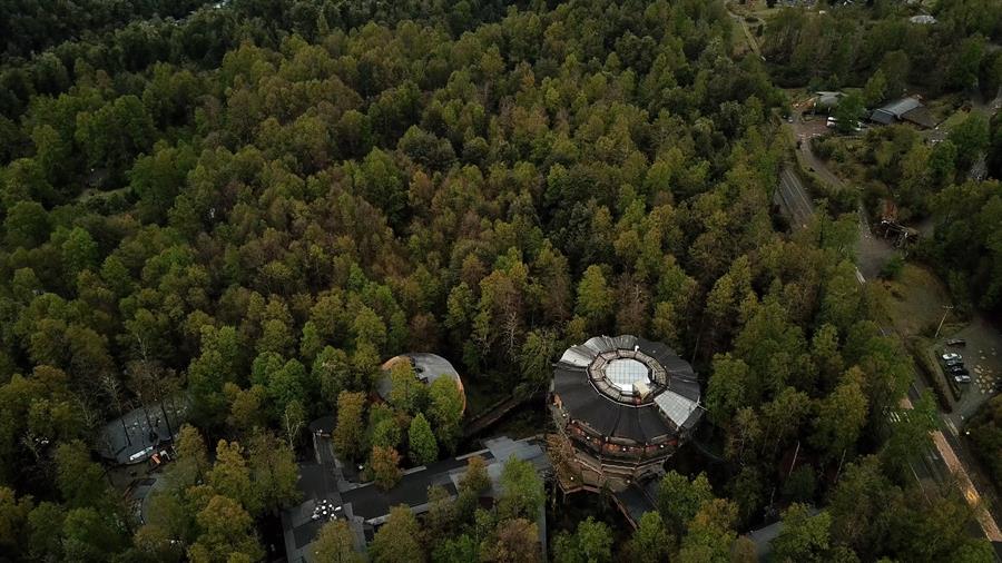 Rodeado de selva patagónica y ubicado en plena Reserva Biológica de Huilo Huilo, a 800 kilómetros al sur de Santiago, los tres establecimientos conforman un complejo único, que se ha convertido en uno de los mayores exponentes del turismo sostenible en la región.