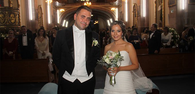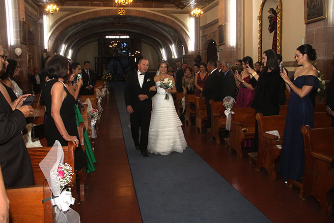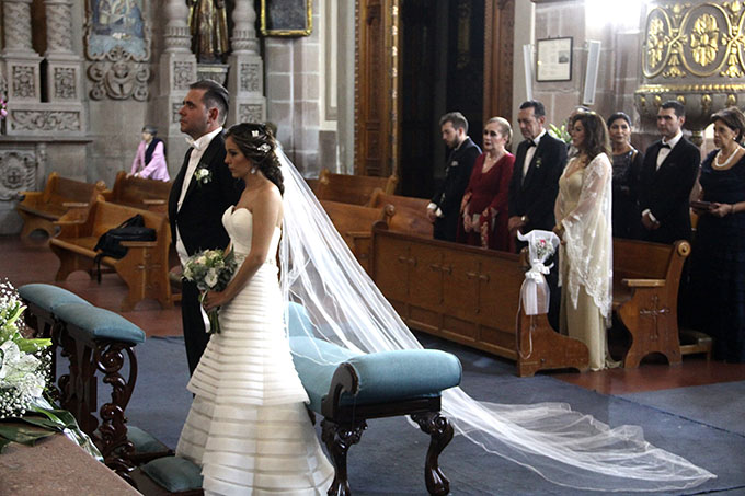 Enseguida, el presbítero les impartió el sacramento y bendijo los símbolos del matrimonio, que les entregaron sus padrinos.