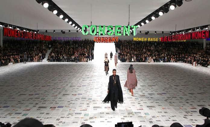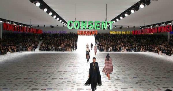 PARÍS, Francia.- "Consentimiento, consentimiento, consentimiento", estaba escrito con luces de neón sobre la pasarela durante la presentación de la nueva colección de confección de Dior en París.