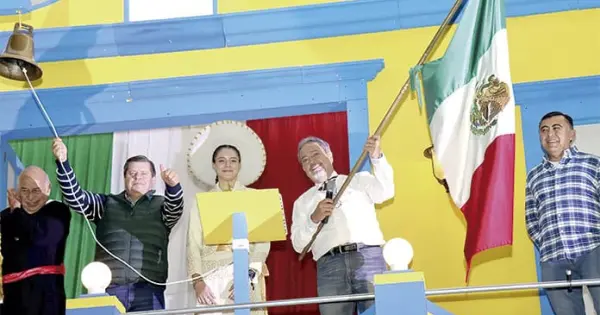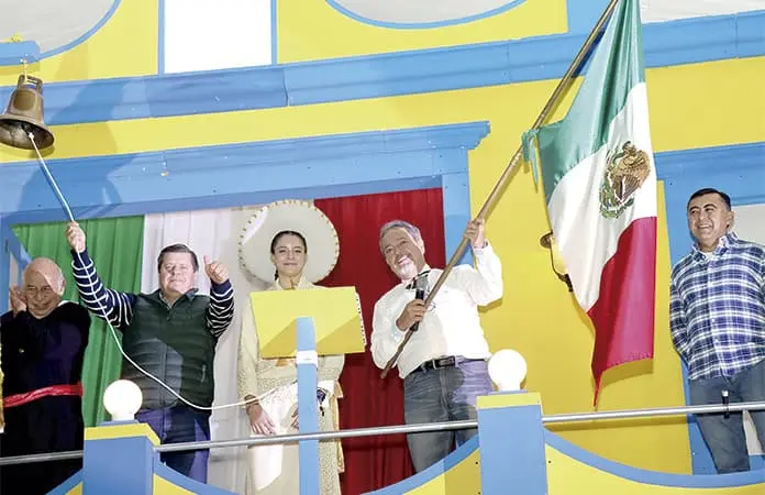 El doctor Juan Alberto Martínez Andrade ondeó el Lábaro Patrio y sonó la campana, ante los gritos de ¡Viva México!, de la concurrencia.
