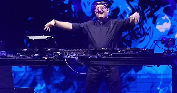 "La danza no es moda, es pasión", fue el mensaje que una voz en off lanzó en el preludio del show gratuito. "Dios los bendiga y vamos a bailar". Fue entonces que el DJ ingresó con atuendo de sacerdote y auriculares. Puso las manos sobre la consola para reproducir una lista que incluyó su hit "El grano de mostaza" y remixes de Bad Bunny y Queen, entre otros.