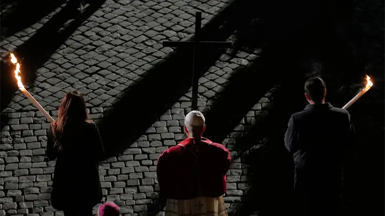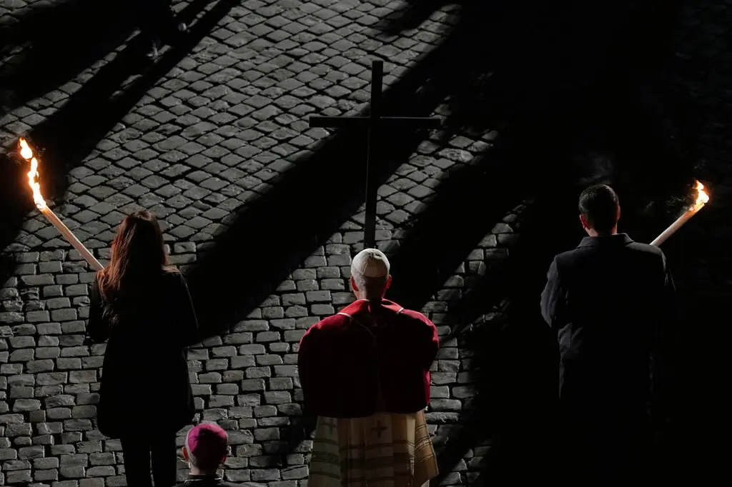 Durante los dos primeros años de su pontificado, Benedicto XVI cargó la cruz en la primera estación dentro del Coliseo y luego siguió a otros portadores en la procesión, que concluye en una plataforma en el monte Palatino.