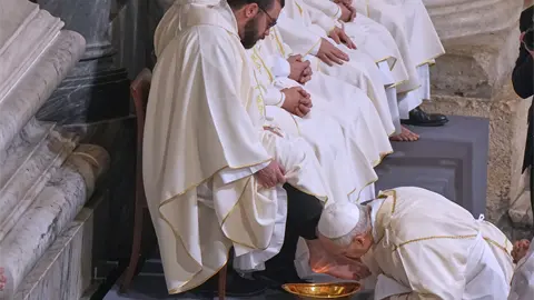 La ceremonia del lavatorio de pies del Jueves Santo es un sello distintivo de cada Semana Santa y recuerda el lavatorio de pies que Jesús realizó a sus 12 apóstoles en la Última Cena, antes de ser crucificado.