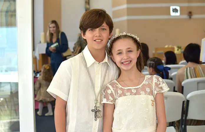 El presbítero Salvador González Vásquez deseó a la niña y al niño que su vida sea de amor, generosidad y respeto a Dios.