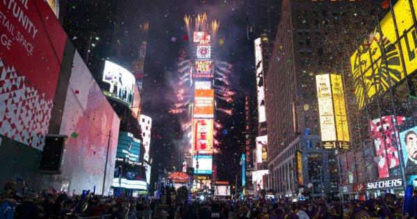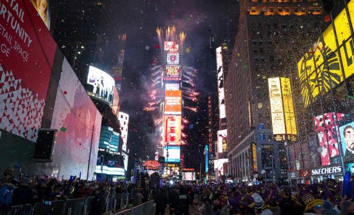 En punto de las 12, las luces se apagan y las cifras del nuevo año aparecen en la cima de Times Square. Inmediatamente después comienza un show de fuegos artificiales y una tonelada de confeti (literalmente) cae sobre el público.