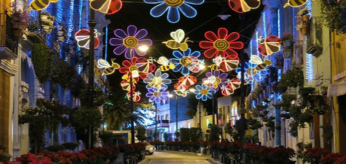 O si se prefiere también está Atlixco, en Puebla, luegar en el que más de un mes las calles y construcciones de este pueblo se visten con figuras luminosas y escenas alusivas a la época.
