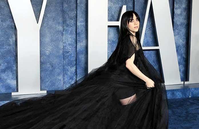 Con un estilo cercano a lo gótico, la cantante Billie Eilish ha acudido a la fiesta con un diseño con una gran cola. Con cola, pero con un corte más ceñido a su silueta, y detalles de pedrería de brillantes en el cuello, la cantante Christina Aguilera también ha apostado por el negro.