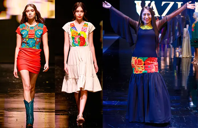 Vestidos de noche con el colorido y las flores de los bordados de la Juchitán, ciudad en el estado de Oaxaca, se robaron las miradas del público que asistió a la presentación de la marca Vazlop, creada por la mexicana Zuleyma Vázquez López.