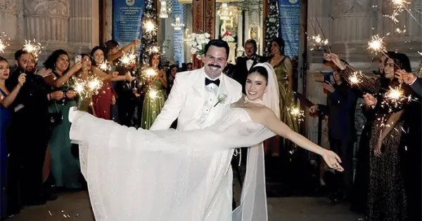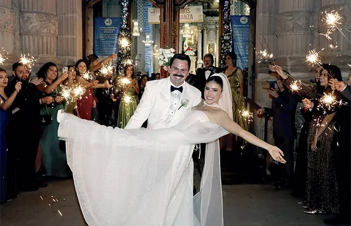 Arturo de la Garza Andrade y María Elena Santos Coy Zavala, Enrique Ress Torres y María de la Paz Briones González testificaron emocionados los esponsales de sus hijos, en la Basílica Menor del Santuario de Nuestra Señora de Guadalupe.