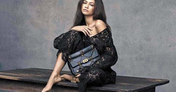 La actriz posa en negro y blanco con el bolso estrella de la temporada, Roman Stud, el icónico complemento inspirado en la arquitectura romana, con tachuelas y acolchado, una “estética punk”, elegante