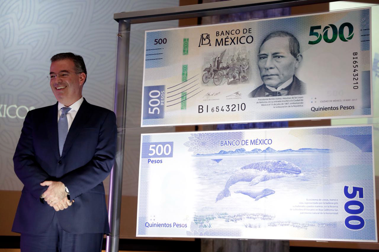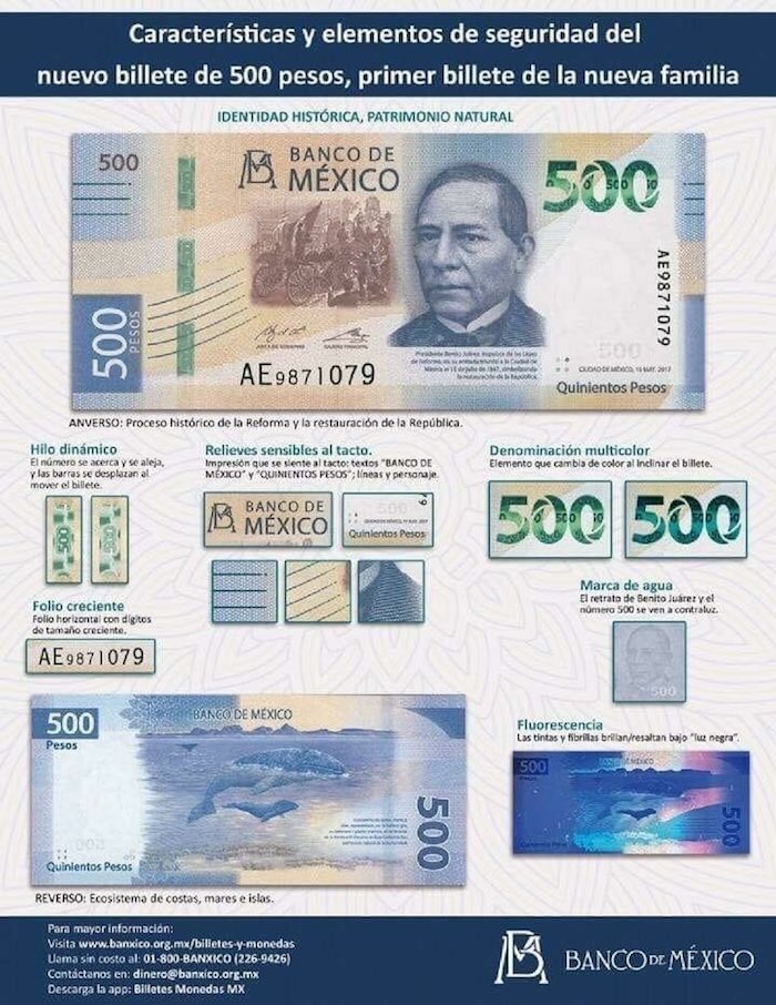 El Banco de México (Banxico) presentó la nueva imagen del billete de 500 pesos, así como las nuevas medidas de seguridad de la nueva familia de papel moneda que circulará en el país.