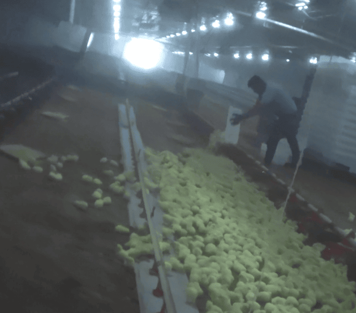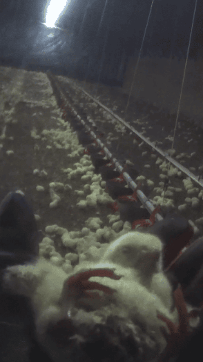 "Está tenuemente iluminado, con caca de pollo por todas partes", dijo el trabajador, quien también grabó un video en secreto allí. "Es como una nube caliente y húmeda de amoníaco y excrementos mezclados". Nicholas Kristof agrega: "Usted puede estar pensando: ¿Qué? La gente está muriendo en una pandemia. Donald Trump se enfrenta a un juicio político en el Senado. ¿Y estamos hablando de cada y de pollo?".