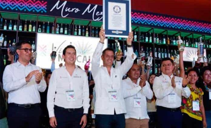 Tras lograr la exhibición de 369 botellas de mezcal en un solo lugar, Oaxaca recibió el Récord Guinness del muro mezcalero durante el festival Vive Mezcal, celebrado este fin de semana.