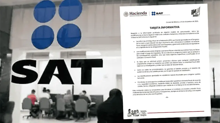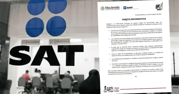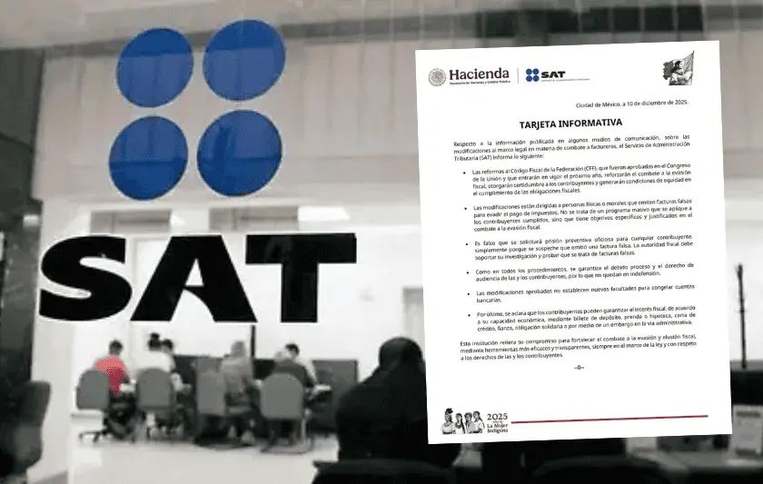 En una tarjeta informativa emitida el 10 de diciembre de 2025, el organismo precisó que los cambios legales están enfocados exclusivamente en quienes emitan facturas falsas para evadir impuestos, y no en contribuyentes cumplidos ni bajo un esquema de aplicación generalizada.