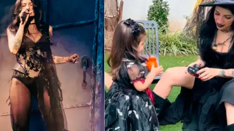 Mientras tanto, "Juli", como también se le conoce, se tomó un tiempo para festejar junto a Inti el Día de las Brujas, motivo por el que se vistieron con largos vestigos negros y sombreros que representan a este personaje, proveniente de las creencias paganas.