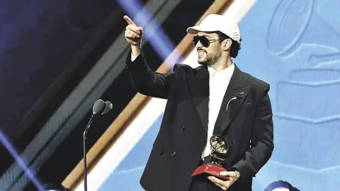 ad Bunny ganó el jueves el premio al álbum del año por “DeBÍ TiRAR MáS FOToS” en los Latin Grammy 2025. El astro puertorriqueño llegó como el más nominado y se fue con el premio mayor de la noche por su álbum homenaje a su natal Puerto Rico.