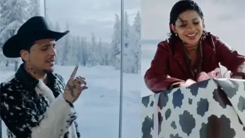 En el video Nodal no está junto a la modelo Dagna Mata, sino en un doble cuadro en el que nunca aparece en el relato del video.
