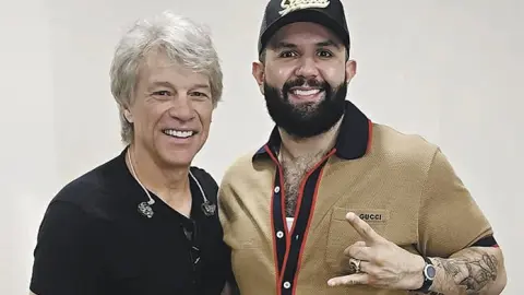 En sus redes sociales, el intérprete de “Te lo agradezco” también compartió una fotografía con Bon Jovi y añadió: “¿Qué les puedo decir? Estamos como niños chiquitos con esta colaboración”.