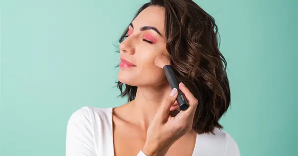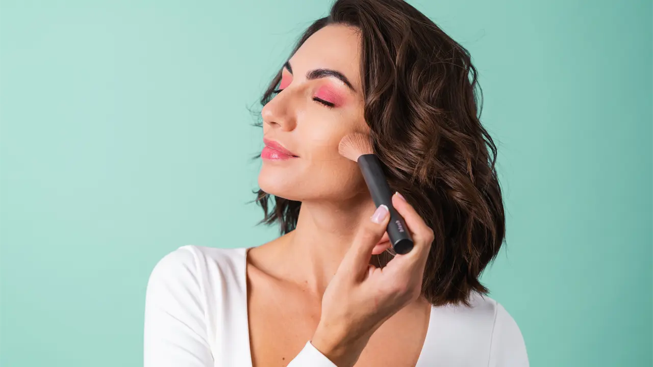 La clave está en la piel luminosa y ligera: base ligera, corrector puntual e iluminador sutil en pómulo. Nada pesado. El efecto debe ser fresco, como si el rubor fuera natural.