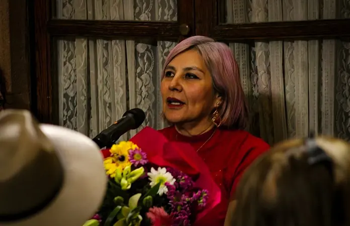 En la conversación con el público, la artista habló sobre su formación en el Instituto Potosino de Bellas Artes y su acercamiento posterior al mosaiquismo, técnica que comenzó a explorar tras conocer la obra de Antoni Gaudí y que consolidó años después con la influencia de Isaiah Zagar.