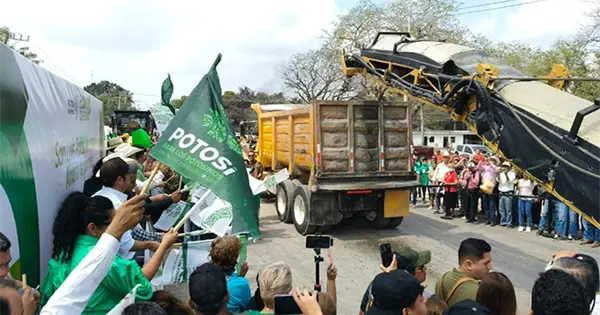El mandatario estatal, Ricardo Gallardo Cardona, acompañado del alcalde Marcelino Bautista Rincón estuvo en la zona catanera para dar arranque a la reparación y rehabilitación de 3.2 kilómetros de calle-carretera, Pedro Antonio Santos, que es la que cruza el municipio hacia el puerto de Tampico.