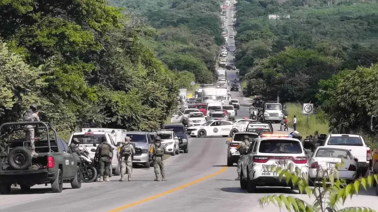 Mientras tanto, otros oficiales que acudían en apoyo solicitaron el respaldo de la Guardia Civil Estatal; sin embargo, en su trayecto fueron sorprendidos con artefactos poncha llantas arrojados sobre la vía, lo que ocasionó un accidente en el que un policía resultó policontundido.