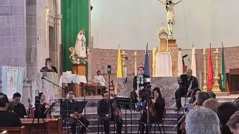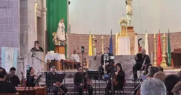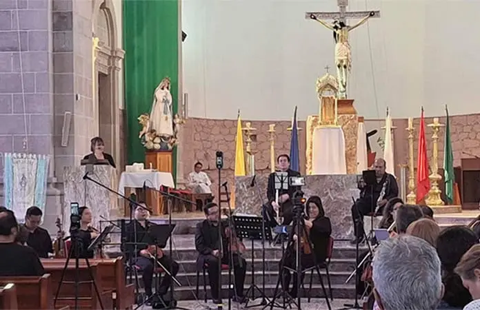 Matehuala.- En el interior de la Catedral se llevó a cabo la clausura del Festival Por Matehuala, con la presentación de la Orquesta de Cámara Arte y Alma la cual tuvo un gran éxito pues muchas personas acudieron a presenciar este evento.