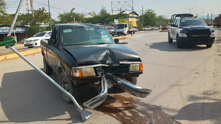 CIUDAD VALLES.– Un conductor resultó lesionado luego de perder el control de su camioneta y derribar una luminaria en el bulevar Lázaro Cárdenas, tras intentar evitar un choque con otra unidad.