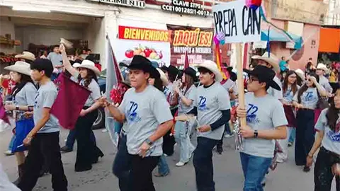 Matehuala.- El Colegio Amado Nervo de Matehuala celebró su 72 aniversario y para conmemorar esta importante fecha, llevó a cabo un colorido desfile por las calles de la ciudad presentando a sus candidatas a reina y a rey, además de realizar una callejoneada.