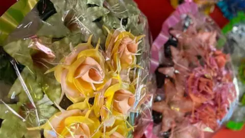 Muchos jóvenes están innovando los arreglos gracias a talleres que han recibido de Rosas Eternas, en los que hacen coronas, elaboradas con este tipo de flores con listón satinado.