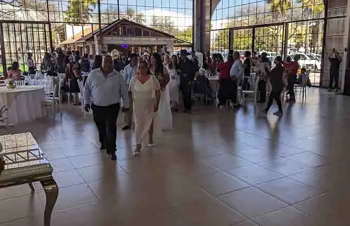 Las 31 parejas acudieron con gran alegría a conocido salón, donde fue el Juez del Registro civil quien realizó la ceremonia para unirlos en una bonita ceremonia, al terminar se les pidió a todas las parejas que se tomaran de las manos e hicieran sus votos matrimoniales, en los cuales se juraron amor eterno, todos los asistentes les brindaron un aplauso y felicitaron a los nuevos esposos.