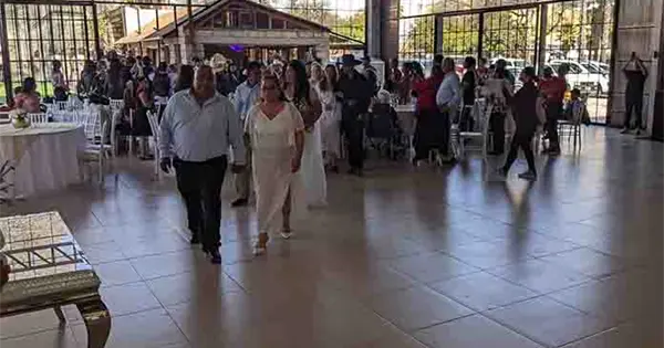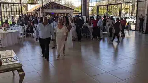 Después de la ceremonia por el civil se realizó el tradicional vals y la víbora de la mar, actividades comunes dentro de las bodas mexicanas.