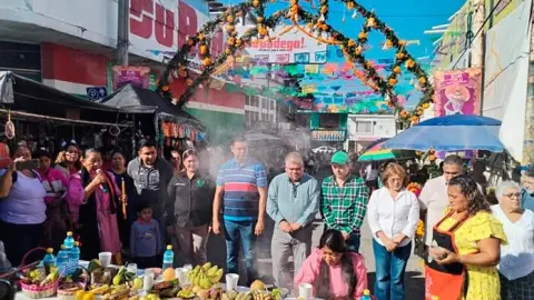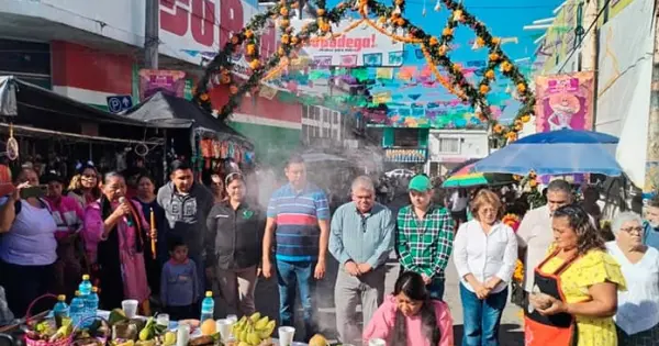 Luego de que acordaron las líderes tianguistas la hechura y confección del arco de muertos que de manera costumbrista se coloca en la calle Abasolo, en donde hace esquina con Porfirio Díaz, invitaron a las autoridades municipales, entre las que destacaron Liveriana Hernández Pérez, coordinadora de Asuntos Indígenas y el secretario del Ayuntamiento, Luis Ángel Contreras Malibrán, quienes además participaron del ritual de ofrecimiento de ofrendas a las almas que regresan del más allá.