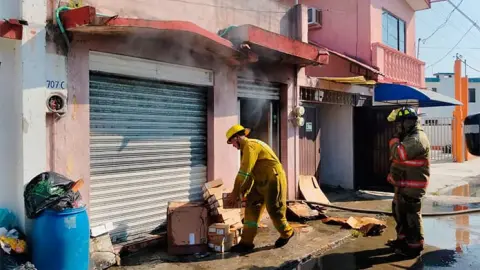 Elementos del Cuerpo de Bomberos y de Protección Civil Municipal acudieron al sitio y confirmaron que el fuego se había propagado en el interior del local. El propietario intentaba sofocar las llamas con una manguera, sin lograr controlarlas. Los bomberos abrieron la cortina metálica para ventilar el área y atacar el fuego de manera directa. Tras varios minutos de labores, lograron controlar la emergencia.