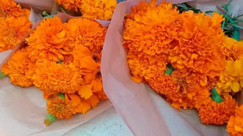 María Martínez dio a conocer que tiene años dedicándose a la venta de flores de cempasúchil, que solo se cosecha en esta temporada.