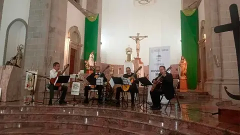 El concierto de música barroca en guitarra fue presentado por la Delegación de Cultura del Altiplano del Gobierno del Estado, interpretaron melodías como Pieza en Re Mayor, La Pequeña fuga en Sol Menor, Huapango de Loman, El Abanico, entre otras melodías clásicas que gustaron a los asistentes.