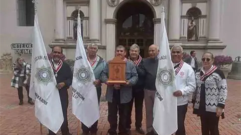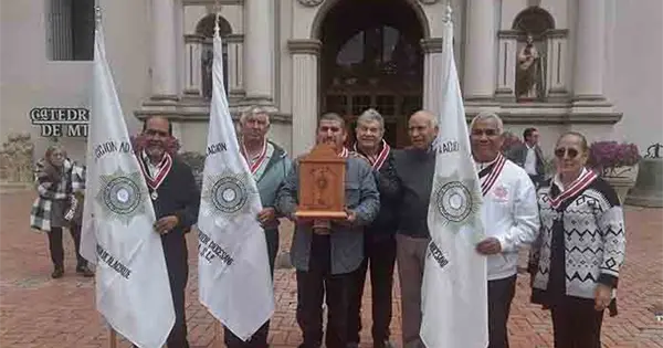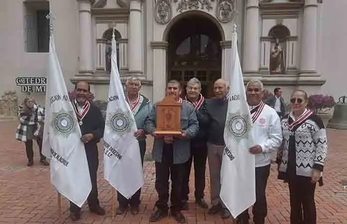 Matehuala.- El presbítero Antonio Ruiz Domínguez, párroco de la parroquia de Olivar de las Ánimas acompañado de integrantes de la Adoración Nocturna de Matehuala, acudió a la Catedral Metropolitana de Monterrey para recibir las reliquias de San Pascual Bailón, santo patrono de la Adoración Nocturna, las cuales traerán a la Diócesis de Matehuala.