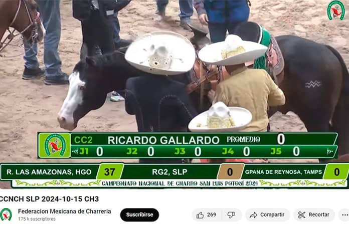 Y luego, el desastre. En la fase de giros, la montura se negó a hacerlo a la izquierda, por más que su jinete se lo ordenara. Con la serie de suertes incompleta, Gallardo Cardona desmontó mientras en la transmisión se mostraba su calificación: cero.