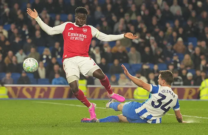 El tanto de Bukayo Saka a los nueve minutos fue suficiente para Arsenal, que ha disputado un partido más que el City. Saka desbordó por la derecha y su remate mordido desde el borde del área se coló entre las piernas del portero Bart Verbruggen.
