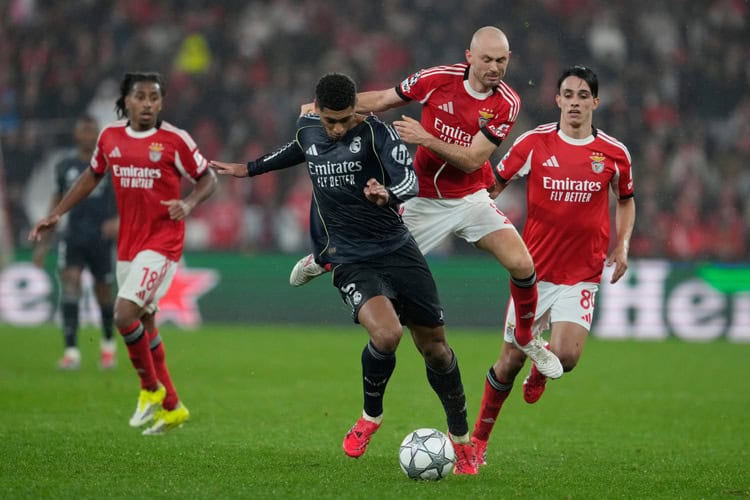 El Madrid no era capaz de parar al Benfica, que apretaba por la banda de Carreras, donde hacían mucho daño jugadores como Prestianni, Sudakov o Pavlidis.
